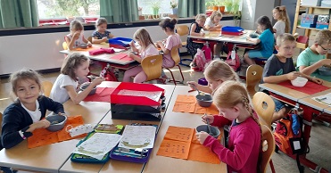 An 15 Stationen, die im Klassenzimmer, im Gruppenraum, im Gang und in der Aula aufgebaut waren, machten sich die 25 Erstklässler daran, ihr Können unter Beweis zu stellen. Egal ob, Rollbrettslalom, Buchstaben turnen, Malen nach dem ABC, Buchstaben bauen aus Legosteinen, ein Tier-ABC aufschreiben, einen Buchstaben-Wimpel fürs Klassenzimmer anfertigen, Servietten, bedrucken, Buchstaben erfühlen, den richtigen Vorgänger und Nachfolger im Alphabet finden ….., alles machte Spaß und jeder konnte am Schluss stolz seine Urkunde präsentieren. Nach so viel Anstrengung durfte natürlich auch eine kleine Stärkung nicht fehlen. So wurden in der Suppe noch fleißig Buchstaben gelöffelt und zum Nachtisch Buchstabenplätzchen verzehrt.