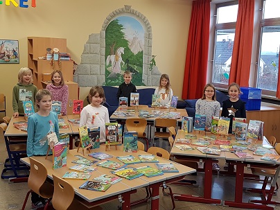 ...für fleißige Leseratten. ENDLICH haben wir es geschafft und haben unsere Spendengelder in neue Bücher für die Lesewerkstatt verwandelt. So gibt es für jede Klassenstufe die aktuellsten und neuesten Bücher. Die Olchis und das Sams dürfen nicht fehlen, aber auch Serienreihen wie das Magische Baumhaus, der Kleine Vampir, Fliegender Stern oder die Drei ??? haben die neuesten Bände dazu erhalten. Ob Du mit Luke Skywalker im StarWar(s) kämpfst oder Dich Um Mitternacht verlieb(s)t ob Du lieber ins alte Rom entfliehst oder eine Ballerina werden willst, bei den neuen Büchern ist für alle und jeden Geschmack etwas dabei! Wir wünschen Euch ganz viele Freude beim Stöbern und beim Lesen der neuen Bücher.