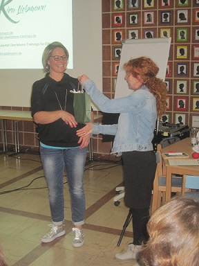 Mit einem kurzweiligen Vortrag zum Thema Lernen macht glücklich von der Akademie für Lernpädagogik hat Kira Liebmann unsere Eltern informiert und unterhalten. Das Interesse war groß und auch viele Eltern unserer Partnerschulen GS Marktoffingen und GS Wallerstein haben den Weg in unsere Aula gefunden. Die Eltern bekamen auf eine offene und ansprechende Weise Tipps, wie sie ihre Kinder zu Hause beim Lernen unterstützen oder ihre Motivation fördern können. Auch wurden grundlegende Aspekte des Lernens besprochen, die ausschlaggebend für einen Lernerfolg sind und wie diese zu Hause mit in den Alltag integriert werden können. Wer wollte, konnte noch die Möglichkeit einer kostenlosen Lernanalyse für sein Kind nutzen und Frau Liebmann bekam noch ein kleines Dankeschön überreicht.