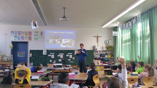 Ein Zahnarztbesuch der besonderen Art stand für die Kinder der 1. Klasse an. Denn es ging nicht wie üblicherweise in die Zahnarztpraxis, sondern unser Schulzahnarzt Dr. Claudius Walgenbach kam gewissermaßen zum „Hausbesuch“ zu uns in die Schule. Nachdem wir uns in den letzten Wochen intensiv mit unseren Zähnen beschäftigt hatten, waren wir richtig gut im Thema drin und er hat uns gelobt, weil wir bereits richtig gut Bescheid wussten.