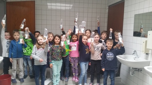 Toll, dass der Zahnarzt für uns die wichtigsten Utensilien wie Zahnputzbecher, Zahnpasta und Zahnbürste als Geschenk mitgebracht hatte. So konnten wir am nächsten Tag in der Schule das richtige Zähneputzen gleich nochmal in die Praxis umsetzen.