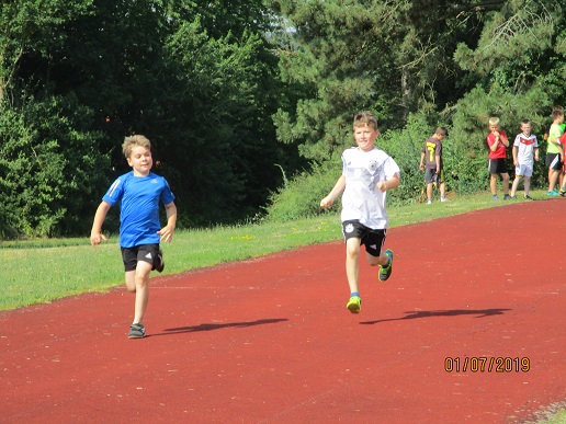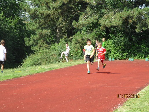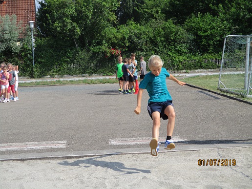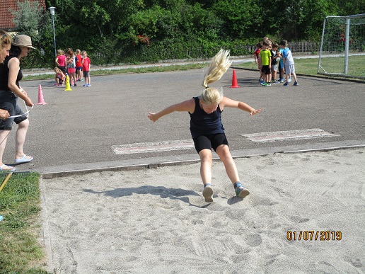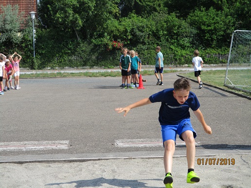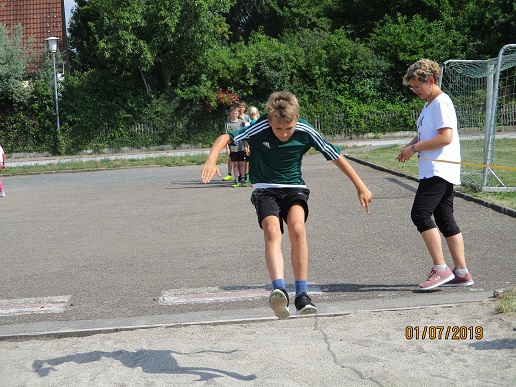 Gestern fanden bei sehr sommerlichen Temperaturen unser Bundesjugendspiele Leichtathletik statt. Die Langstrecke war gleich als erste Sportart zu bewältigen und so waren alle vor der großen Hitze wieder an der Schule. Dort gab es wieder ein gemeinsames, gesundes Frühstück in der Aula, bevor es in Riegen zu den drei weiteren Disziplinen Sprint, Weitsprung und Weitwurf ging.