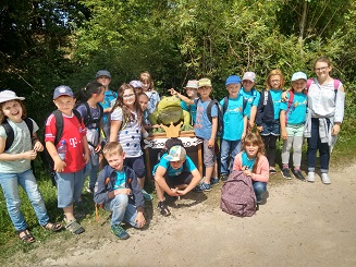Unser diesjähriger großer Ausflug führte die erste und die zweite Klasse bei bestem Wetter zur Landesgartenschau nach Wassertrüdingen. Im Wechsel durften beide Gruppen den Workshop „Sei kein Frosch – hilf den Fröschen!“ besuchen. Auf spielerische Art und Weise erfuhren sie dort anhand von Schauterrarien und auch mit passendem Lehrmaterial vieles über die einzelnen Arten an Fröschen, Kröten, Molchen und Eidechsen, deren Biologie und Lebensweise und was man als Einzelner für deren Erhalt tun kann. Schnell war klar, dass unsere einheimischen Amphibien eine faszinierende und leider bedrohte Artengruppe gleichermaßen ist.