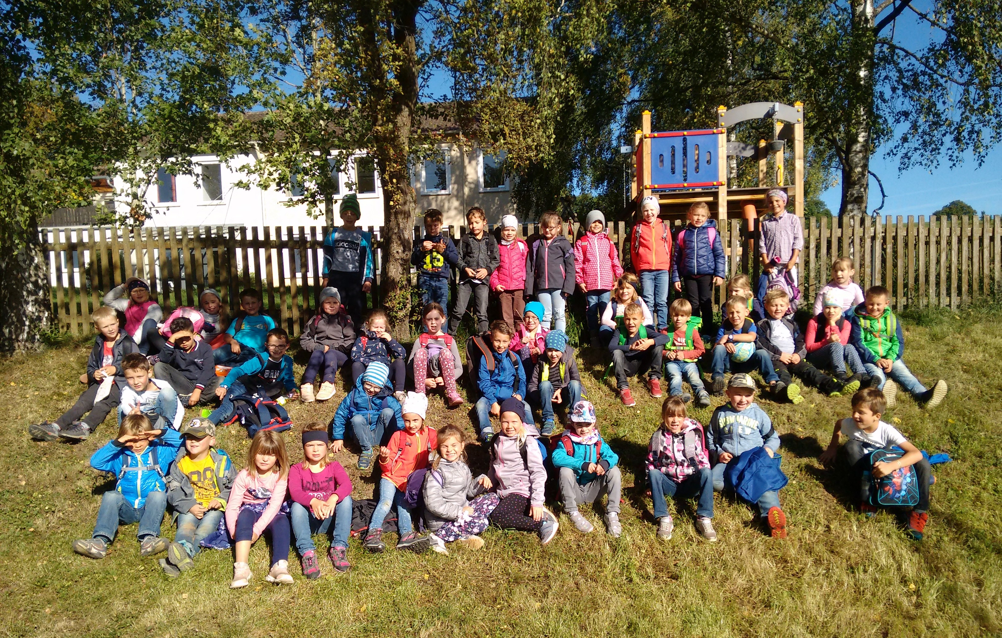 Die erste und die zweite Klasse wanderten bei bestem Spätsommerwetter über den Urlas nach Schopflohe zum dortigen Spielplatz.