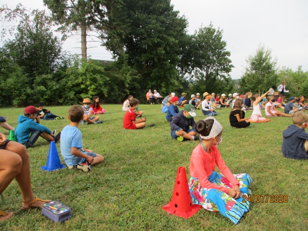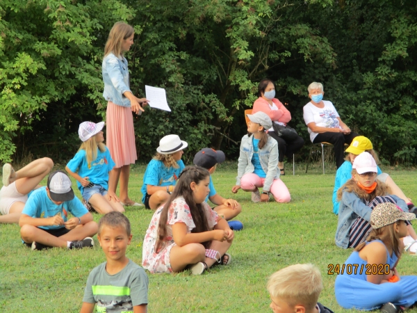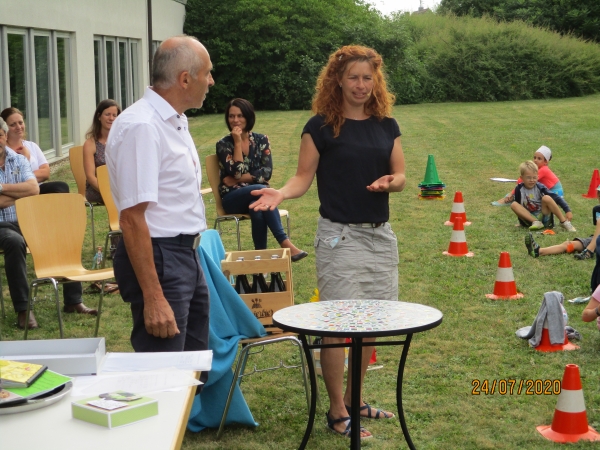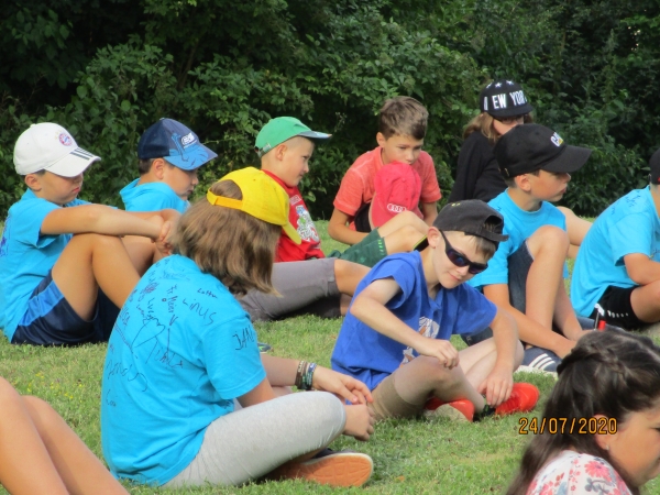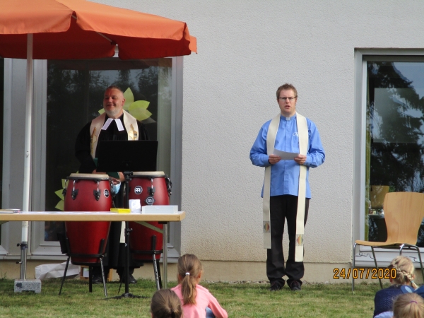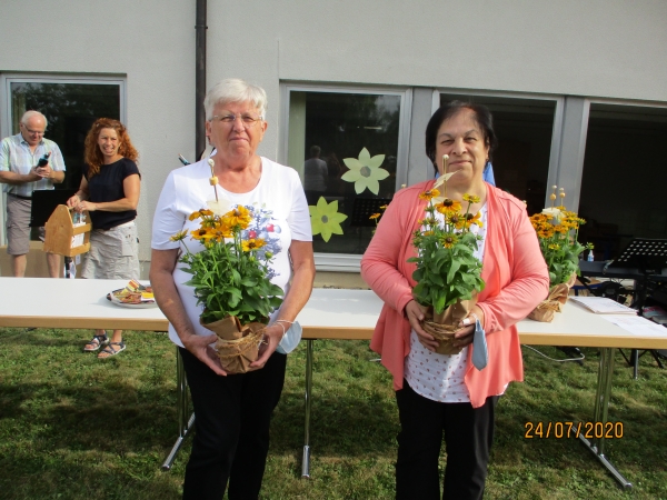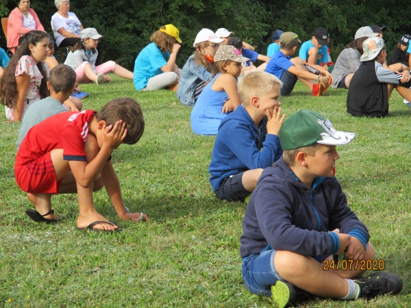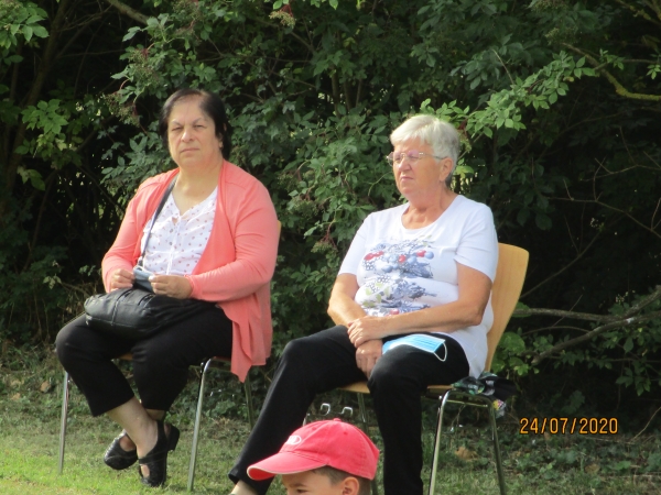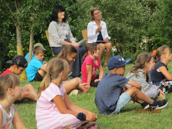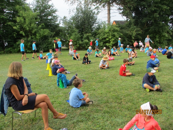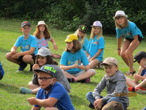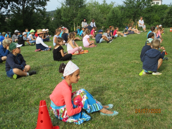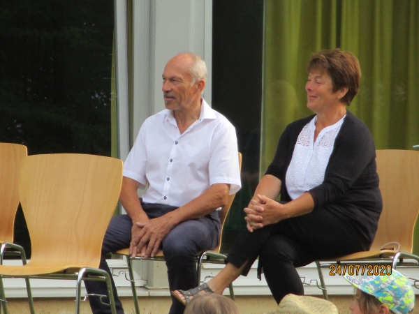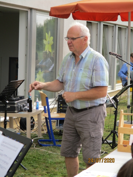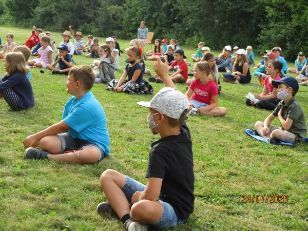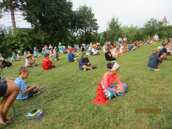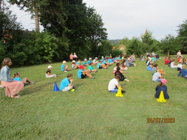 Eine etwas andere Andacht feierten wir am letzten Schultag. Wir konnten gemeinsam draußen auf der Wiese mit Pfarrer Layh und Pfarrer Kammerlander hinter dem Schulhaus beten und singen. Das Wetter machte gut mit und es wurde nicht zu heiß, so konnten wir anschließend unsere Ehrungen durchführen. Die besten Leser im Antolin-Online-Programm wurden ausgezeichnet, die besten Sportler beim Gerätturnen, die Sieger des Malwettbewerbes und die Gewinner des Luftballonwettbewerbs konnten geehrt werden. Sie erhielten Sachpreise, Bücher und Büchergutscheine oder eine kleine Süßigkeit.