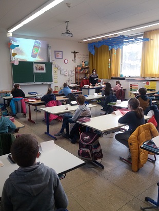 Am 9.März besuchte die Gesundheitsförderin Frau Krebes die 4.Klasse. Zuerst beschäftigten die Kinder sich mit dem Gehirn. Die Schüler erkannten auf dem Poster, dass es aus mehreren Regionen besteht. Jeder Bereich steuert etwas ganz Bestimmtes: das Stammhirn regelt Lebensnotwendiges wie die Atmung, das Kleinhirn ist für das Gleichgewicht verantwortlich und mit dem Großhirn denken, lernen und fühlen wir. Besonders wichtig ist es zu wissen, wie man denn am besten lernt. Das veranschaulichte sie den Schülern mit dem Lernen eines Gedichtes. Danach war jedem klar - nein, ein aufregender Film am Abend vermasselt mir meinen Gedichtvortrag am nächsten Tag! Im Anschluss probierten sie Gehirnjogging aus. Ja, das machte Spaß!