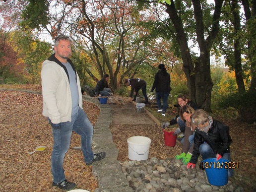 Unser neuer Elternbeirat hatte schon seinen ersten Einsatz und hat unseren Barfussfühlpfad wieder winterfest gemacht.