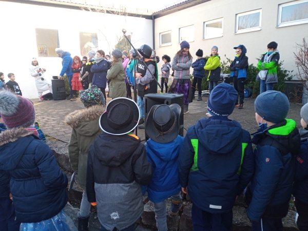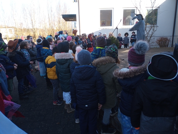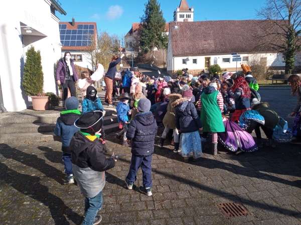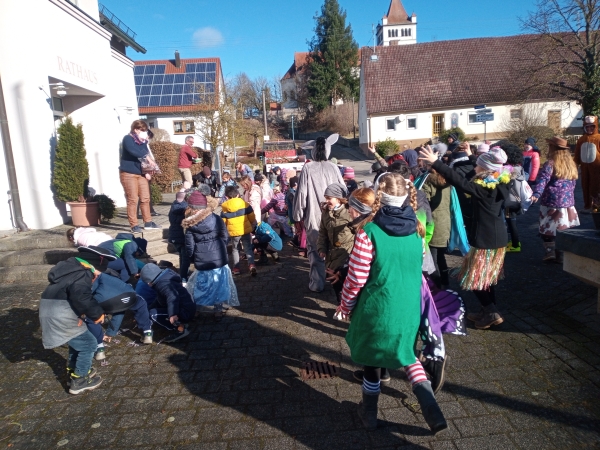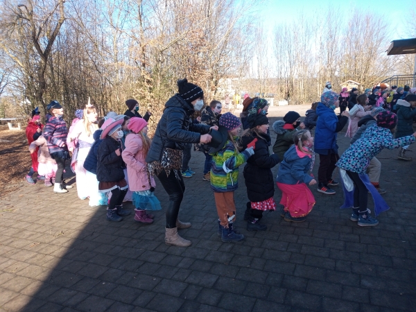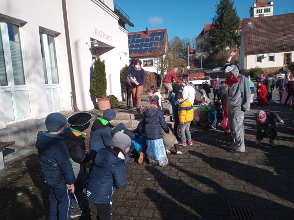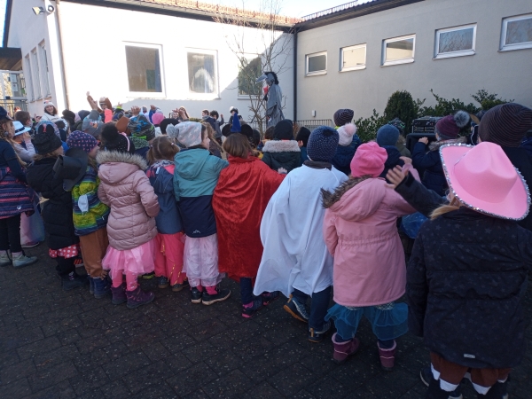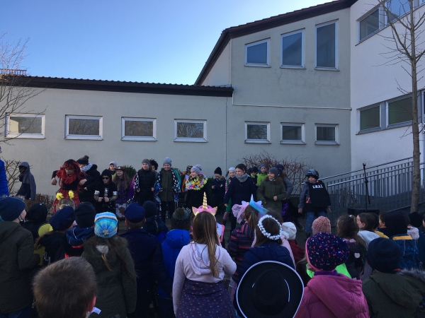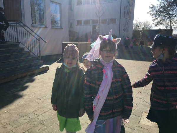 Hier noch ein paar Eindrücke vom diesjährigen Faschingstreiben! Alles im Freien, als Umzug und mit Tanz und natürlich mit den gewohnten Quarkinis! Vielen Dank ans Rathaus für die Kamelle und an den Elternbeirat für den süßen, runden Rahmen!