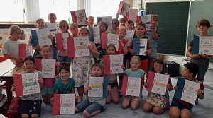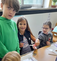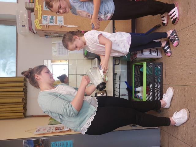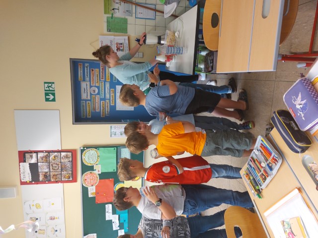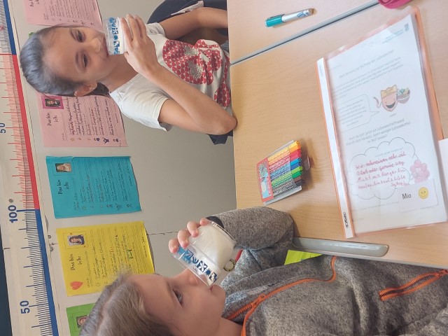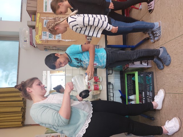 Wir Zweit- und Drittklässler haben eine ganze Woche lang eine Ausbildung zu Lebensmittelrettern gemacht. Dabei haben wir „Prinz Köstlich“ kennengelernt, der beim Einkaufen war und den „Supersalat“ und die „Hmmbeere“ getroffen hat, die eigentlich weggeworfen werden sollten, weil sie nicht mehr so frisch waren und nicht mehr so schön aussahen. Prinz Köstlich hat die beiden dann vor der Abfalltonne gerettet und so haben sie sich angefreundet. Sie haben sich vorgenommen von nun an als Lebensmittelretter unterwegs zu sein.