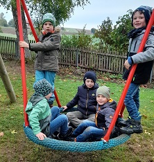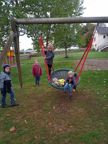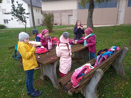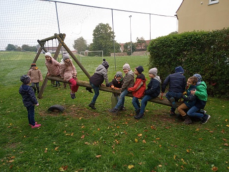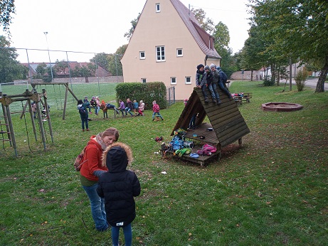 Die ersten Schulwochen sind vergangen und es ist schon wieder Oktober. Der Wettergott meinte es dennoch recht gut mit uns, denn nach anfänglichem Nebel wurde es im Laufe des Vormittags immer schöner. Wir Erst- und Zweitklässler machten uns auf den Weg nach Schopflohe. Über den Radweg erreichten wir schnell unser Wanderziel, den Spielplatz am ehemaligen Kindergarten. Dort konnten wir uns so richtig austoben und hatten viel Spaß, auch wenn es ab und an noch etwas nass war und wir uns auch ein bisschen dreckig gemacht haben. Gut gestärkt ging es dann über den Urlas mit nochmaliger Rast an der Weidenkapelle zurück zur Schule nach Fremdingen.