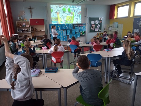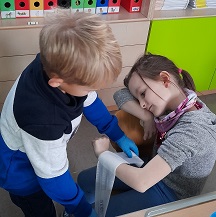 Erste Hilfe können auch die Kleinsten lernen. Da Kinder gerne helfen und gleichzeitig gerne lernen bietet es sich an, möglichst frühzeitig grundlegende Kenntnisse und Fertigkeiten in Erster Hilfe zu vermitteln. Dass bereits jede Menge Vorwissen bei den Erst- und Zweitklässlern vorhanden ist, wurde gleich anfangs deutlich, als sie auf einem großen Wimmelbild jede Menge Gefahrensituationen erkannten und beschrieben und Vorschläge zur Lösung machen durften. Auch die verschiedensten Hilfseinrichtungen und deren Aufgaben, wie z.B. Feuerwehr, Rotes Kreuz, DLRG oder Polizei, wurden problemlos benannt.