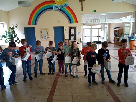 Eine besondere Überraschung wartete auf unsere Erstklässler. Nachdem bereits sehr viele Buchstaben gelernt sind, können sie jetzt schon richtig gut lesen. Warum also nicht auch ein ganzes Buch? Deshalb haben unsere Zweitklässler schöne Lesetüten bunt bemalt und beschriftet. Diese wurden dann feierlich in der Aula übergeben. Gemeinsam wurde anschließend das Lied "Alle Kinder lernen lesen" gesungen und nachgeschaut, was sonst noch Nützliches in der Tüte ist.