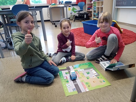 Mit dem kleinen Roboter KUBO können schon Grundschüler lernen zu programmieren. Unsere Zweitklässler haben es in kurzer Zeit geschafft, ihren KUBO so zu programmieren, dass er bestimmte Laufwege erlernt und sich merkt. Mit Hilfe von Richtungs-TagTiles (geradeaus, links, rechts) bauen sie dazu bestimmte Wege auf der Landkarte und schalten diese dann so in Reihe, dass KUBO den selben Weg auch ohne TagTiles bewältigt. Ein toller Erfolg, wenn dies nach einigem Experimentieren und Diskutieren in der Gruppe gelingt.