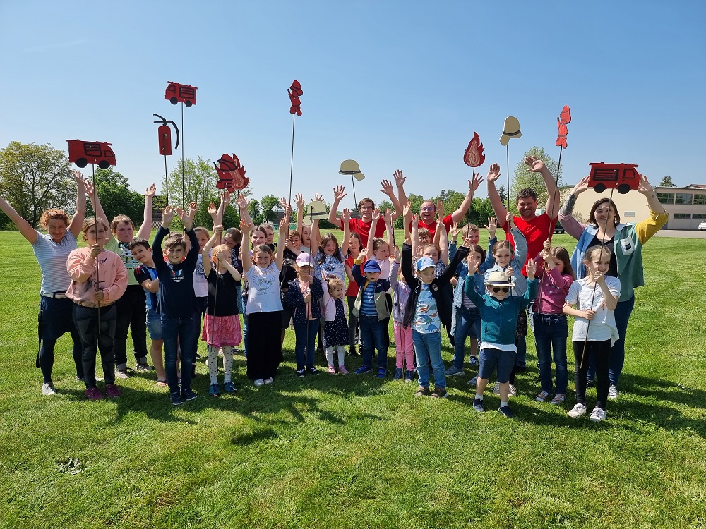 Die Grundschule und die KiTa Fremdingen sind auch schon mittendrin in der Vorbereitung für das große Jubiläumsfest. Erste Aufgabe war, die bunten Aufstellschilder zu bemalen, die man momentan überall an den Straßenrändern unseres Dorfes finden kann. Schilder mit Feuerwehrmännern, Autos, Helme, Spritzen und natürlich Feuer waren zu bemalen.