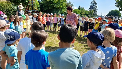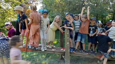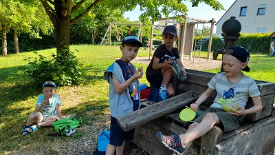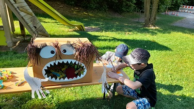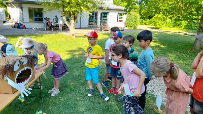 Um sich noch besser kennenzulernen, trafen sich die Erstklässler mit den Vorschülern am vergangenen Donnerstag im Garten der Kita. Nach ersten Kennenlernspielen durften die Kinder an aufgebauten Stationen verschiedene Aufgaben erfüllen wie z.B. ein Monster füttern, Muster legen, Mengen und Zahlen passend zusammenpuzzeln… ! Nach einer gemeinsamen Brotzeitpause war noch viel Zeit zum freien Spielen mit den zukünftigen Schulkindern. Es war ein schöner Vormittag, der natürlich viel zu schnell zu Ende ging!