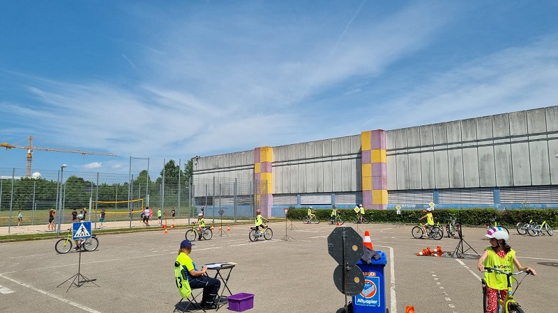 Bereits im Mai begann für die Kinder der 4. Klasse die Radfahrausbildung. Über Wochen hinweg beschäftigten sie sich intensiv mit verschiedenen theoretischen Grundlagen. Die Freude war groß, als die Klasse endlich zusammen mit der Polizistin Frau Donderer und dem Polizisten Herr Seel das Radfahren in Oettingen üben durfte. Auf dem geschützten Übungsplatz trainierten die Kinder wichtige Regeln, wie rechts vor links, Anhalten am Stoppschild, Verhalten beim Linksabbiegen und vieles mehr.
