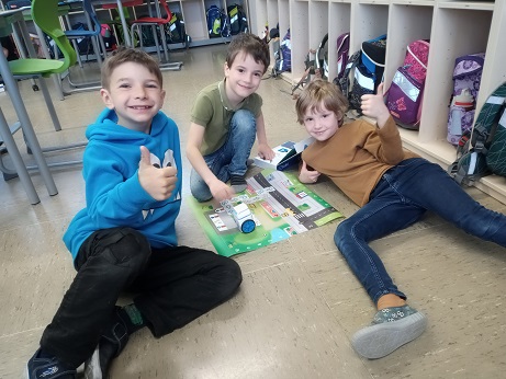 Mit dem kleinen Roboter KUBO können schon Grundschüler lernen zu programmieren. Unsere Zweitklässler haben es in kurzer Zeit geschafft, ihren KUBO so zu programmieren, dass er bestimmte Laufwege erlernt und sich merkt. Mit Hilfe von Richtungs-TagTiles (geradeaus, links, rechts) bauen sie dazu bestimmte Wege auf der Landkarte und schalten diese dann so in Reihe, dass KUBO den selben Weg auch ohne TagTiles bewältigt. Ein toller Erfolg, wenn dies nach einigem Experimentieren und Diskutieren in der Gruppe gelingt.