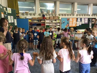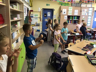 Bereits zum zweiten Mal besuchte uns unsere Gesundheitsförderin Frau Krebes, um wieder mit uns auf Forschungstour zu gehen. Diesmal ging es um unsere Knochen, ohne die unser Körper keinen Halt hätte und wie Wackelpudding wäre, wie wir schnell bemerkten. Welche wichtige Rolle unsere Gelenke und Muskeln spielen, damit wir uns in alle Richtungen bewegen können, durften wir bei verschiedenen Übungen am eigenen Leib erfahren und spüren. Dass wir für die wichtigste Säule der Welt, nämlich unsere Wirbelsäule, alles tun müssen, um sie gesund und beweglich zu halten, leuchtete uns sofort ein.